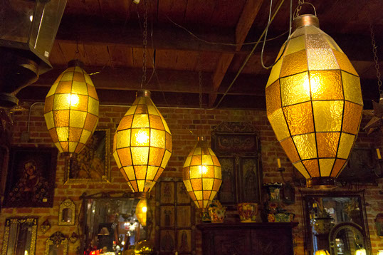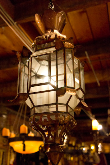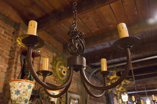 Tin, iron, and pewter lamps and chandeliers